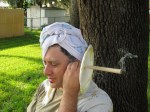 Around 3:00pm we had a hotdog fest (love that red onion sauce) with the four of us, my nephew, Josh, and his family (Shannon, his wife, that little ball of energy, Braydon – 3, and Araya, 7), and Todd. We ate, played hide and seek, and either tried to feed Paul’s squirrels or scare them to death. The weather was so agreeable, so we hung out in the front yard most of the afternoon. It was nice and relaxing and great to be with family. I sure do miss my OUT West family, so it was nice to be with my BACK East family. Tears are starting up now…and my heart hurts. I do miss you guys. Okay, after the troops left, we watched TV while working on the computer, me blogging and who knows what Jim was doing.