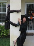 We got to Florida around 2:00pm and went straight to the Keane’s in Jacksonville. Sean and Candy are friends of mine from San Francisco, but were originally from Florida. So, after some California time, they went back East. We had a nice afternoon and night at their really cool latino/tropical abode. I really felt like I was in the tropics there with all the windows open onto the screened-in pool, surrounded by plants backed up against a lush overgrown canal at the back of the property. We met their pups, Wednesday, the 30 lb. cat, and then heard about Worm, the hiding kitty. We also got the pleasure to meet another of the 3 muses, Nonna, Nanna, not sure how it is spelled, but she is Candy’s Grandmother who is in town to help out with TheThreeMusesClothing.com for the Halloween season. While I talked that business with Candy, Jim was learning about Sean’s globe trotting Special Forces antics. After a beer and some stories, Candy and Sean made us a wonderful dinner of grilled swordfish, shrimp and veggies. Now…that is how you cook fish…deep fry free! We enjoyed a great game of Cranium later. Oh, let me rephrase that, we kicked their butts! Okay, beginners luck…but even if we lost it would be worth it to see us all doing the puppet challenges and let me not forget the clay sculpture tasks.